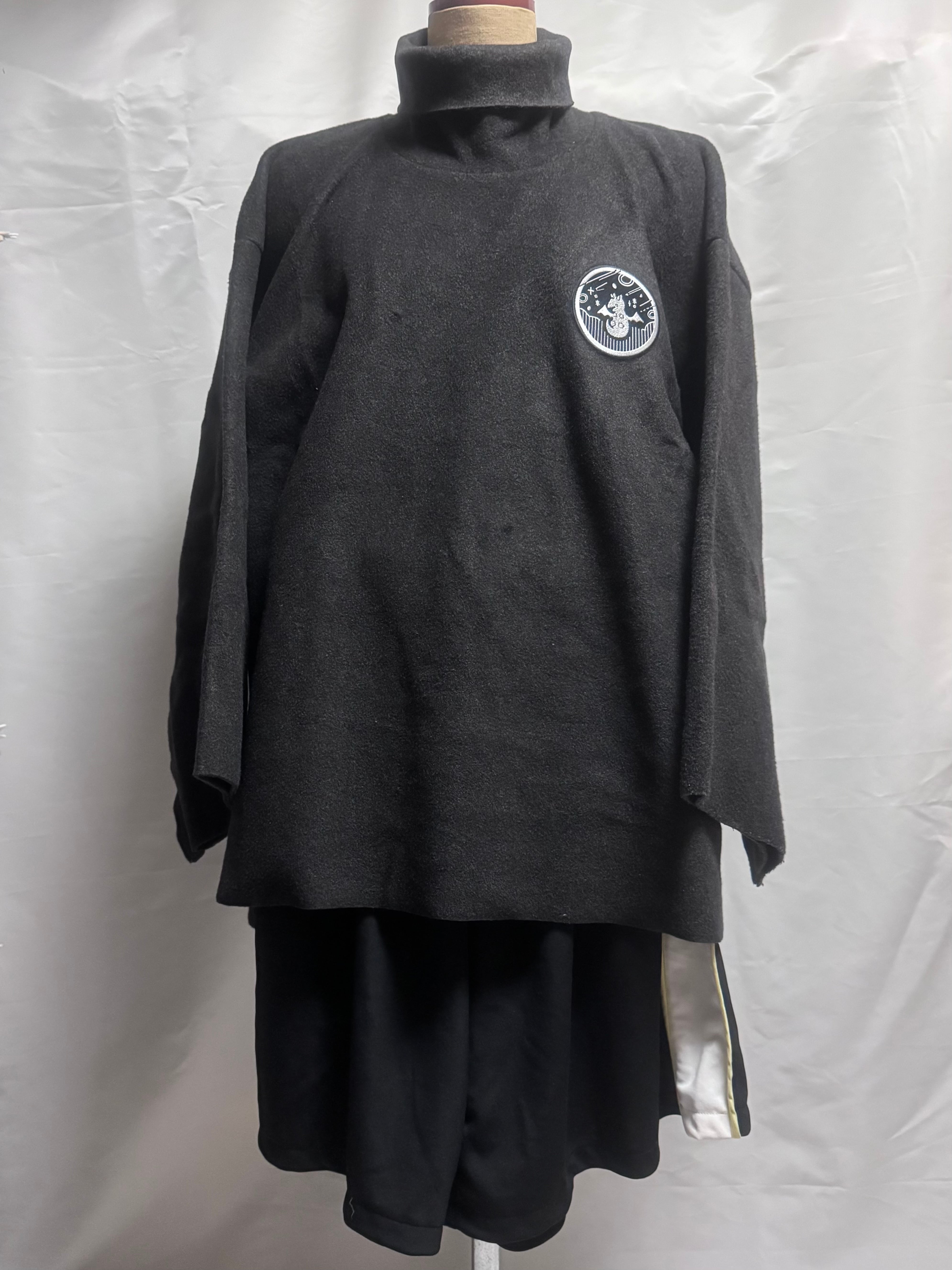 オーバーサイズのフリースタートルネックに定番のラインジャージショーツのセットです。
