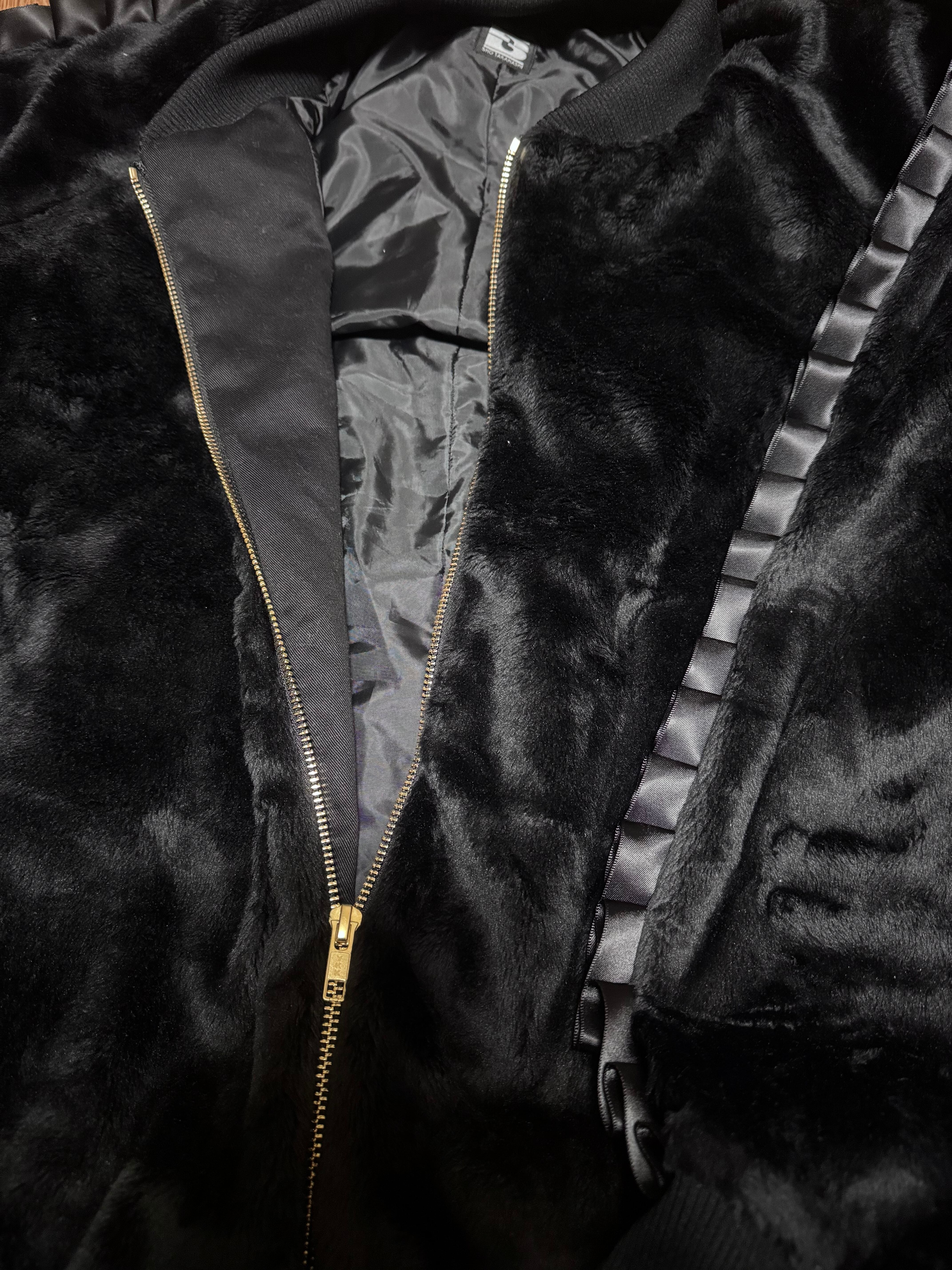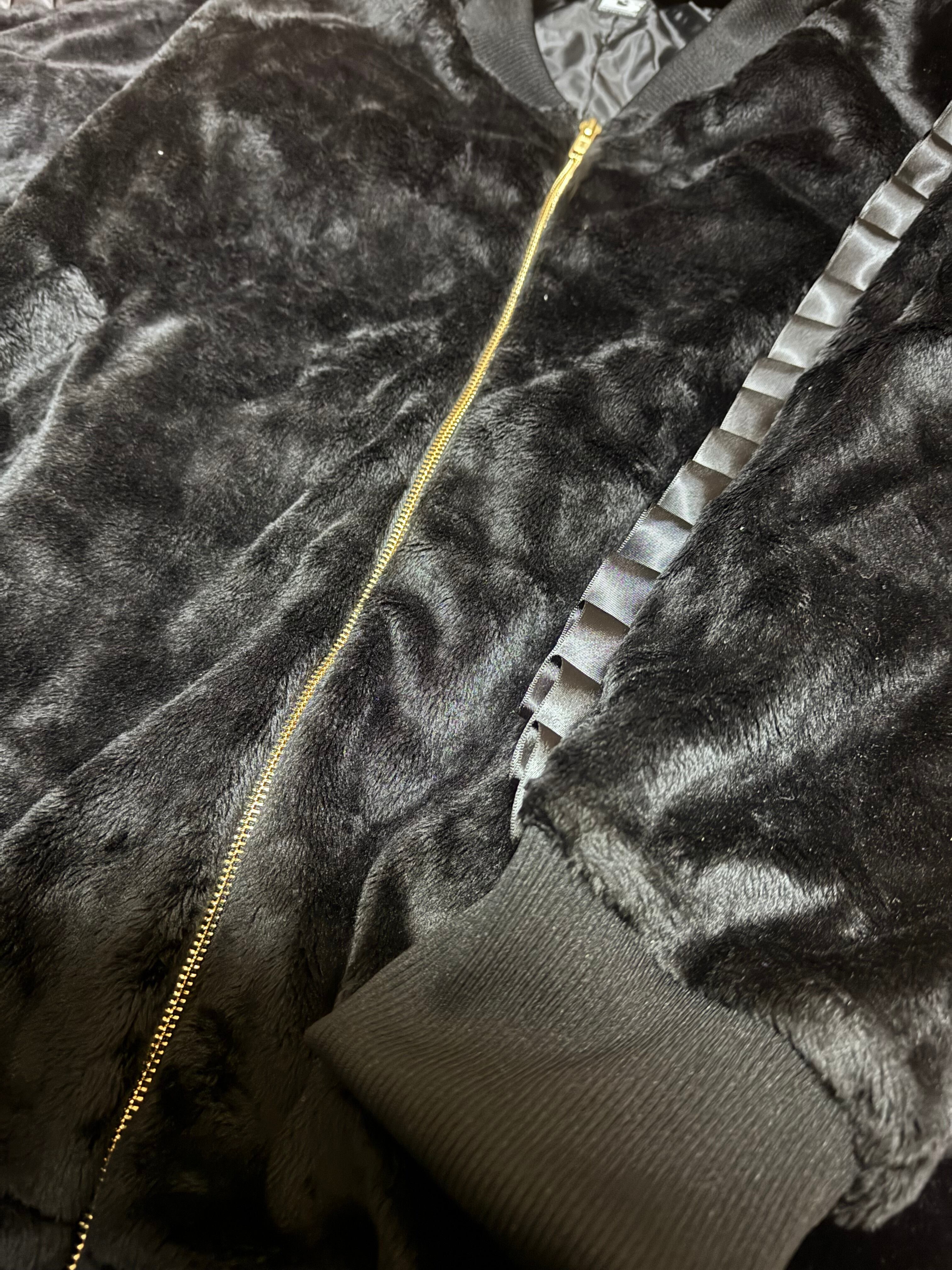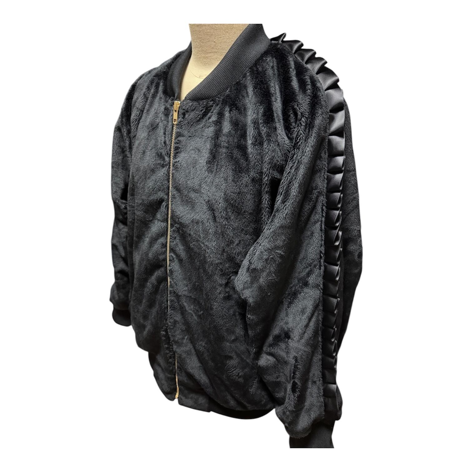 触り心地の良い短めのファー生地のブルゾンにフリルをあしらったブルゾンです。